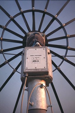 Der EGIS-Rotor in Nahaufnahme. Hier kann man gut erkennen, daß die vier Schrauben einfach durch die beiden Halteplatten der ORBITRON geführt wurden. Es ist also kein besonderer Antennträger nötig.