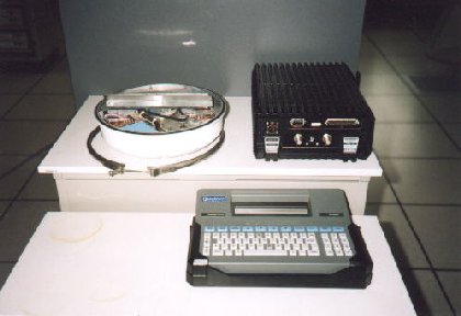 einen LKW. Das runde Ding oben links ist die Antenne (geöffnet),