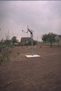 Hier sieht man den EGIS-Rotor zu Testzwecken mit einem 85 cm Offst-Spiegel bestückt. (Notdürftig mit Schraubzwingen befestigt.)