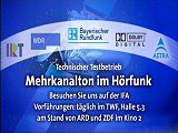 Astra: Das geplante Dolby-Digital-5.1-Radioprogramm des Bayerischen Rundfunks und des Westdeutschen Rundfunks hat - wie angekündigt (SatelliFax 11.08.03) - auf Astra (19,2° Ost), 12,604 GHz H (SR 22.000, FEC 5/6), mit Testausstrahlungen begonnen. Die Kennung lautet "BR/WDR Mehrkanaltest". Zur Internationalen Funkausstellung soll ein 24- Stunden-Programm mit Musik- und Hörspielproduktionen ausgestrahlt werden. Quelle: SatelliFax ![]() |